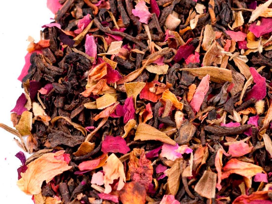 Pu erh is versatile in terms of paring with flowers: roses, jasmine, osmanthus, lavender, etc.