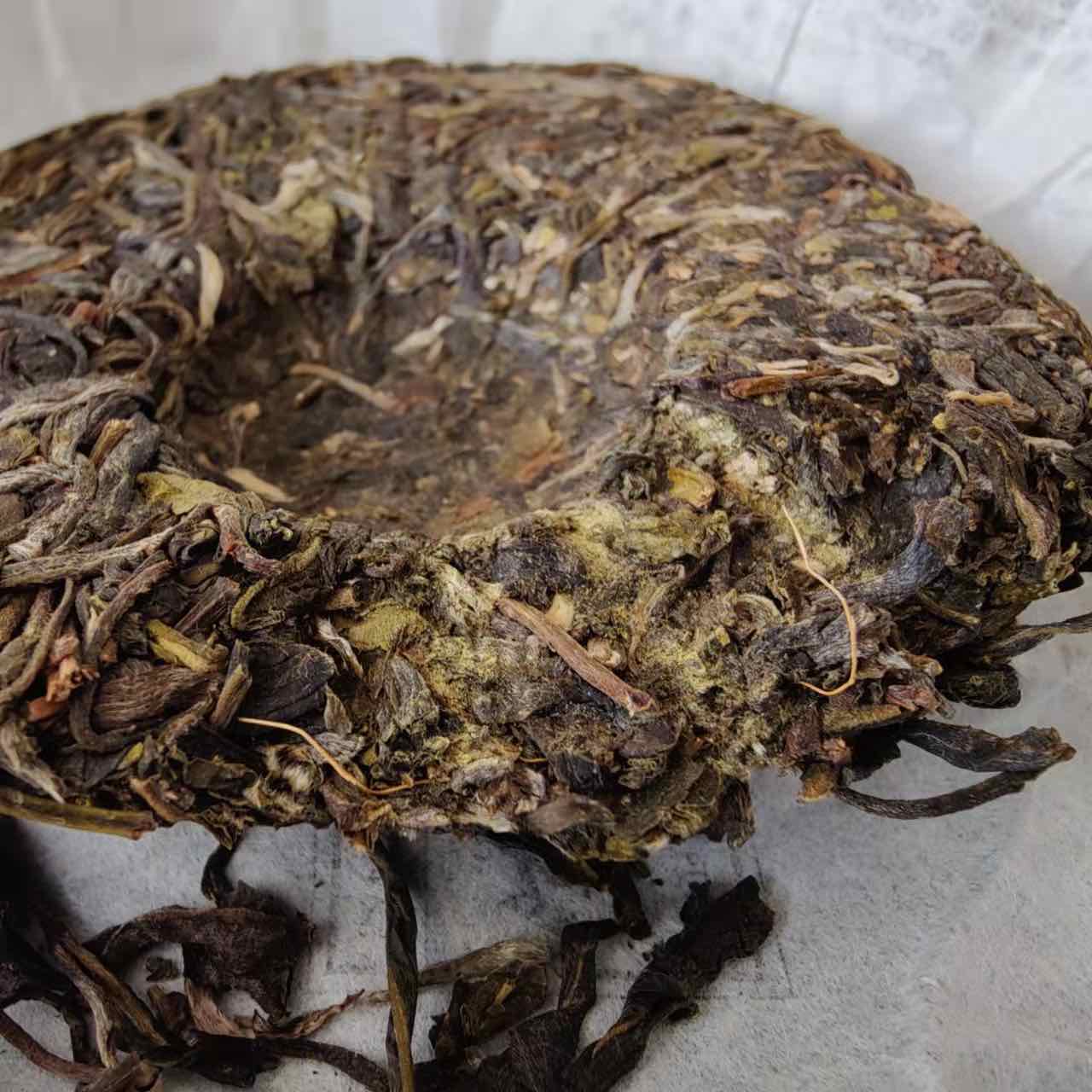 The leaves on the outer parts are easy to pry with a tea knife, yet not loose enough to loosen up with your hands. The center is somewhat tighter. In fact the tightness in the center is close to a tuocha. As a result, the aging of this cake may not be uniform, which could make it interesting to revisit after a few years.