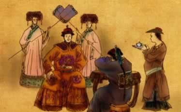 Then many years passed, the old lady’s house became a famous temple called “Hugong”. And 18 tea trees, irrigated by the water from Dragon Well, were planted outside of it. In Qing Dynasty, an emperor called Qianlong came to Hangzhou and visited Hugong temple. When he was picking teas from the tea trees outside the temple, he received a message that his mother was ill and wished his immediate return to Beijing. He shoved the leaves he had picked into his sleeve and immediately left for Beijing. Upon his return he immediately went to visit his mother. She noticed the smell of the leaves coming from his sleeves. Qianlong decided to immediately brew a cup of tea made from the Dragon Well tea leaves for her. The holy tea cured her disease. The Emperor was very grateful and gave the 18 tea trees  Imperial status. Since then, Dragon Well tea became the tribute tea to emperors.