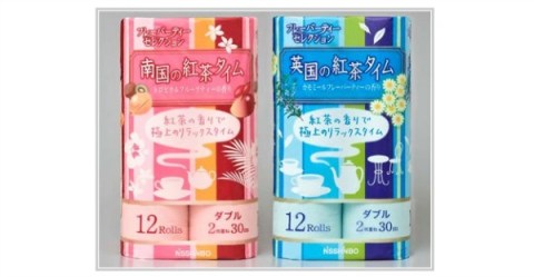 well you are in for a pleasant surprise – starting April 1st  Japanese Company Nisshinbo Paper Products will be selling tea scented toilet paper — pink for Southern Countries Tea Time, blue for English Tea Time.